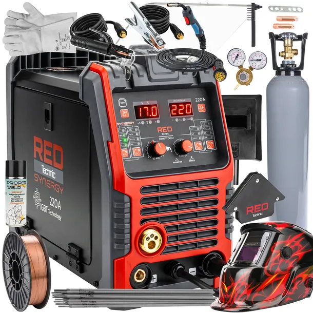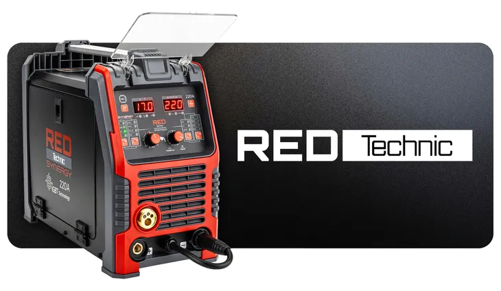 W komplecie znajduje się przyłbica spawalnicza RED Technic z funkcją TRUE COLOR oraz systemem samościemniania, reagującym na rozpoczęcie i zakończenie spawania.